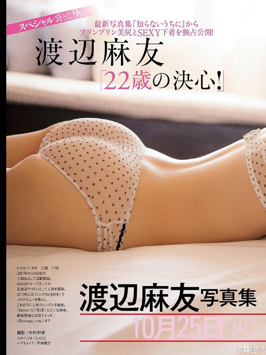腾讯娱乐讯 日本偶像女星渡边麻友近日拍摄了性感写真集,她展现了自己凹凸有致的好身段,尤其是翘臀让不少粉丝流鼻血。