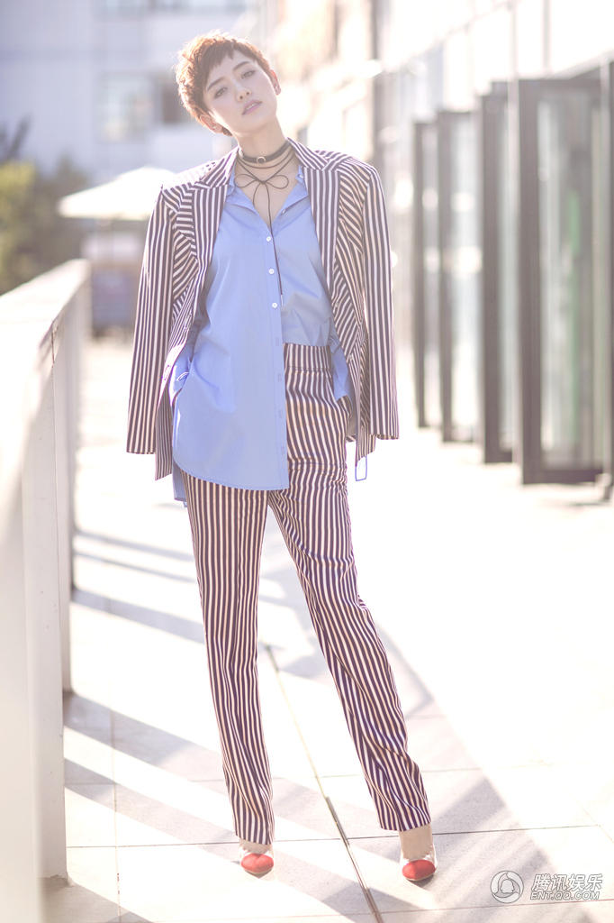 近日,演员李晓峰曝光一组秋冬时尚街拍。片中身着黑白相间条纹西服套装很帅气,内搭纯色衬衫,干练帅气间留有一丝野性,更显女人味。今年颇具人气的开衩半身群,内搭性感黑色短裤,若隐若现间露出纤细动人的长腿、洁白的肌肤。搭配红、蓝色条纹灯笼袖真丝单品,使整个人显得性感妩媚。